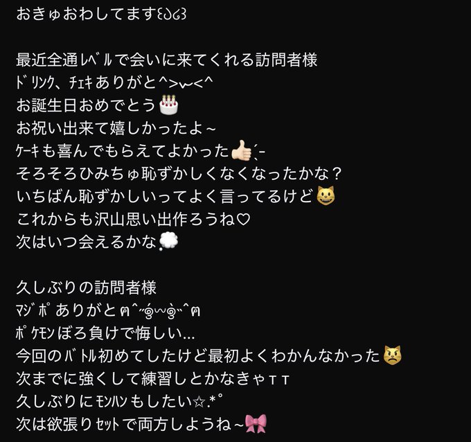 沖縄・那覇 GothicBAR デビル&エンジェル東雲のい🐏デビエンメイド@noi_devi_oki·7時間おきゅおわ🐏⸒⸒‼️ 東雲今日も楽しかったです🎶 ワールド中にポケモンさんが来てくれて‼️ 東雲サイコーに嬉しかったでございますദ്ദിᐢ- ̫-ᐢ₎ ワールド2周🌎とドリンクも沢山‼️🥤 ありがとうございましたー‼️‼️‼️ᵕ̩̩_ᵕ0:04引用東雲のい🐏デビエンメイド@noi_devi_oki·12時間おきゅいんദ്ദിᵔ.˛.ᵔ₎❤︎ 今日はTwitter動いててイーロンくんえらこ‼️ 髪染めたい‼️次は何色にしよ👶🏻💭 本日も2時までご帰宅お待ちしてます🚪︎🌟 x.com/devil_angel_ok…4119