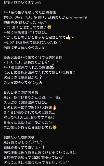 沖縄・那覇 でりしゃすぽしゃけむすびもぎゅ🍙@デビエンメイド@mogyu_delipo·9時間おきゅおわ🎶 はっぴーばーすでぃの幸せな日をお祝いできたのとっても嬉しい😭✨ もぎゅと出会ってくれて今日会いに来てくれてありがとう‼︎🥰🥰 一緒にお祝いしてくれたご主人様も幸せをありがとうございます🎶 また来年もお祝いしたいな💭 ぽん!も乾杯もチェキも遠隔もありがとです💞 次は23日💭引用むすびもぎゅ🍙@デビエンメイド@mogyu_delipo·19時間がおがおがおがお!!🐺🖤 ご主人様のおでんも食べちゃうんだお!! めっちゃ雨空模様でとってもぴえん…☔️ もぎゅが傘になってあげるね^_^♩ 2時までご帰宅お待ちしてます♡ x.com/devil_angel_ok…33786