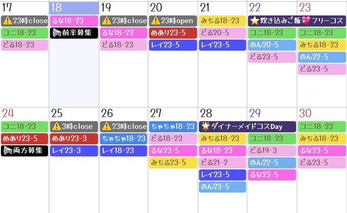 岡山 ふぇありーめいど固定みくる†❤︎ふぇありーめいど@fairymaidmikuru·♡みくる11月後半お給仕予定♡17