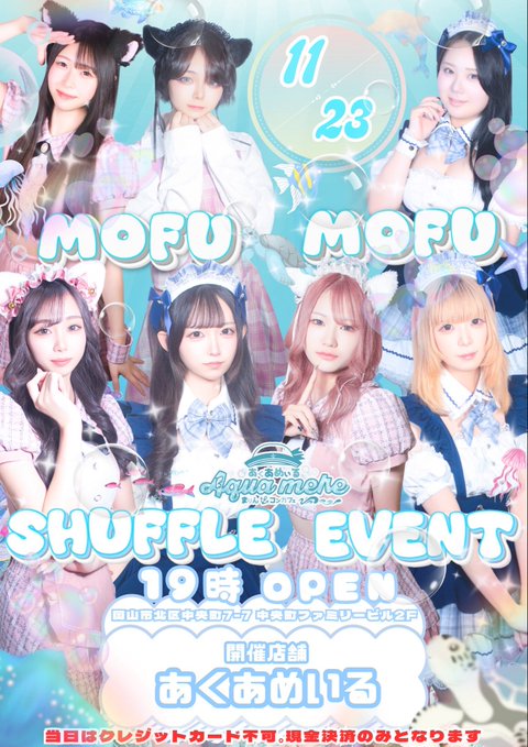 岡山 Aquamere〜あくあめぃる〜固定🫧*・あくあめぃる・*🫧岡山コンカフェ@aqua_mere·⚓️シャッフルイベント⚓ @watashinodeban1 さんとシャッフルイベントです🫧🫧 19時〜𝑳𝑨𝑺𝑻🫧 場所はあくあめぃるです🩵 #岡山コンカフェ #岡山 #コンカフェ #中央町 #新店舗 #マリンコンセプト5310