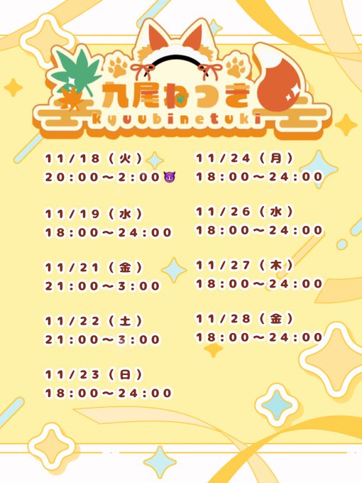 沖縄・那覇 でりしゃすぽしゃけ固定九尾ねつき🍁@でりぽけメイド@netuki_delipo·🍁🦊11月後半お給仕予定🦊🍁 11月後半のお給仕予定です🐾 あっという間に11月も後半⁉️(早いですね💦) 沖縄も少しづつですが涼しくなってきているので体調に気をつけて‼️ 沢山食べて沢山眠って下さいね🍽´-💤 11月後半のお給仕も沢山2525をお届けしますよ😊🎶 今月も最後までよろしくです🍁1220444