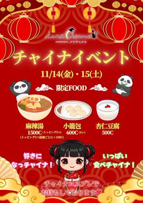富山 IDOLcafe&Bar くえすちょん?とうた🍨くえすちょん?出勤固定ツイさんがリポストIDOLcafe&Bar くえすちょん?|コンカフェ富山|アイドルライブ毎日開催中🎤@Bar_question_·本日チャイナコスプレDay1日目🌙🐼 中国食堂 #月とパンダ さんゲスト出店です✨ 美味しいご飯とチャイナコスに癒されてください♪ 宿題デコチェキ解禁🎨📸 本日も皆様のご来店をお待ちしております♫ りお💟とうた🍨めろ🐁いゔ🍼ねむ🐑 くえすちょんライブ🎤22時〜 #富山 #アイドル #コンカフェ中国食堂 月とパンダさんと他5人5201,985
