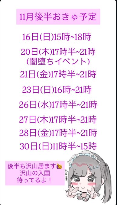 沖縄・那覇 でりしゃすぽしゃけ華城霞🤍でりぽけメイド@___kasumi___00·6時間かすみちゃん、およよよよという感じで寒さにやられて本日お給仕できなくなってしまいました😿 およよよよ、解消できる方大募集です、今すぐに助けに来て欲しいですね 明日はがんばりたい気持ちなので応援しててください、褒められると元気出ます、かすみが起きるまでに1人1個応援or褒めお願いします🥲引用華城霞🤍でりぽけメイド@___kasumi___00·11月4日🌟11月前半お給仕予定🌟 11/7(金)20時〜01時 11/8(土)18時〜24時 11/14(金)20時半〜01時 11/15(土)20時半〜01時 びーくりするぐらい金土のみだ🐰🧡 11月はディズニーに行ってくるよ◎ さむいかなあ、さむいよな🥲 防寒グッズ教えてください❤️🔥417543
