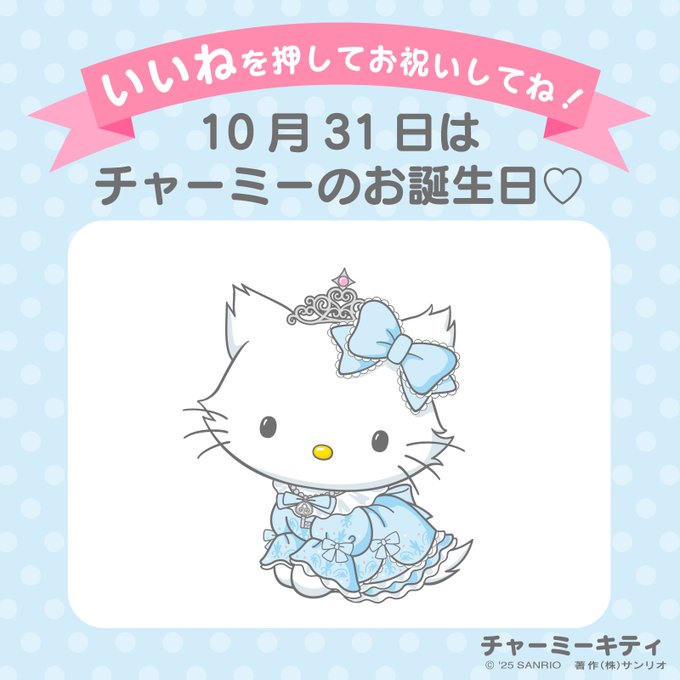 岡山 ちよにやちよにもね 11/15生誕さんがリポスト正方形のプロフィール画像サンリオ【公式】@sanrio_news·#サンリオキャラにおめでとう 「いいね」を押してお祝いしてね! ✼•┈┈┈┈┈┈┈┈┈┈┈┈┈┈•✼ 10月31日はペルシャネコの女のコ #チャーミー のお誕生日♡ 大きなリボンがチャームポイントだよ♪ https://sanrio.lnky.jp/NrLBhKY482,0551.1万27万