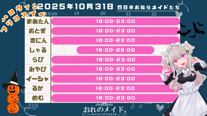 その他中部 おれのメイド四日市固定杏にん@anin_oremei·🎃11月のお給仕表です🎃 みんなに会えるの楽しみにしてるよ~❕135