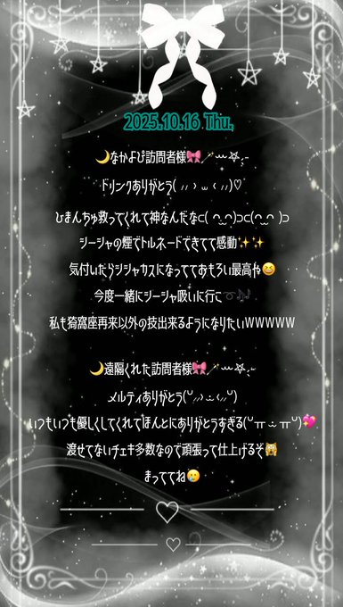 岡山 Luna Charme ~ルナシャルム~なつめ@natsume_710_·10月25日✦⋆⋆ 2025.10.16 Thu. ⋆⋆✦ 大時差へーかい( ᴗ ̫ ᴗ ) ☪︎┈┈┈┈┈┈‧✧̣̥̇‧┈┈┈┈┈┈┈☪︎0:06引用なつめ@natsume_710_·10月16日にゅーかい𐔌՞⁔⸝⸝ɞ̴̶̷ ̫ ᴗ̤⸝⸝⁔՞𐦯ᯤ♡ ネイルかえて浮かれやさん🎶 #岡山コンカフェ #コンカフェ #コンカフェ嬢 #地雷系女子 #自撮り界隈3150