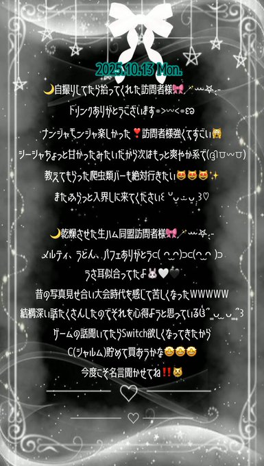 岡山 Luna Charme ~ルナシャルム~なつめ@natsume_710_·✦⋆⋆ 2025.10.13 Mon. ⋆⋆✦ にゅーかいしてへーかいしてました.ᐟ ☪︎┈┈┈┈┈┈‧✧̣̥̇‧┈┈┈┈┈┈┈☪︎0:060:064139