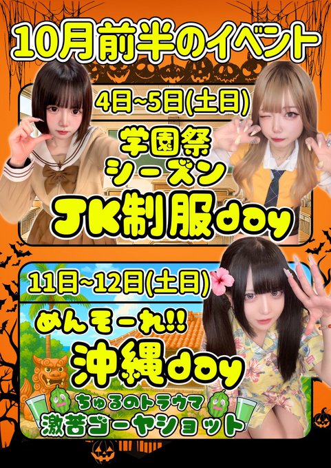 浴衣カフェーMATSURIーキャスト募集中@CafeMATSURI·👘10月5日(日)15時~23時👘 🎀JK制服day🎀 【後半】19-23 ちゅる @Churu_222 のる @no0_rUu さぐめ @sagume_3 ※ゆるるは本日お休みです #福岡コンカフェ #天神コンカフェ #コンカフェ19480