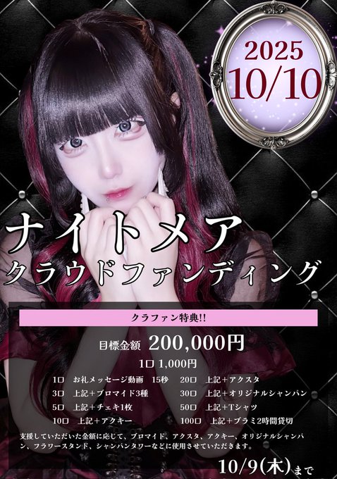 めるさんがリポストBLACKFAMILY😈悪魔アイドルコンセプト 福岡春吉コンカフェ@BlackFamily_off·18時間本日悪魔の日😈 クラファンへのご参加はこちら⬇️ https://blackfamily.base.shop/items/118533221 ぜひ最高の1日にしましょう📷✨ ご協力お願いします📷😈引用BLACKFAMILY😈悪魔アイドルコンセプト 福岡春吉コンカフェ@BlackFamily_off·9月14日【ナイトメアクラウドファンディングへのご協力のお願い】 10/10(金)ナイトメアのお誕生日会&副店長就任イベントにおいて、みなさまと一緒に最高のイベントにしたいと考えております!!😈 そこで....今回クラウドファンディングへのご協力をお願いしたいのです✨さらに表示1398