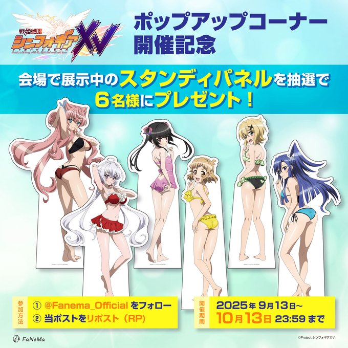 雪音さんがリポストFanema_Official@Fanema_Official·【フォロー&リポストキャンペーン】 「#戦姫絶唱シンフォギアXV」 ポップアップコーナー開催記念 / 会場で展示中のスタンディパネル✨を 抽選で6名様に #プレゼント🎁 \ 1⃣@Fanema_Officialを #フォロー 2⃣本投稿を #リポスト ✅締切10/13(月)迄 詳細はこちらから https://fanema.jp/features/symphogear-xv…さらに表示1013,5952,23916万