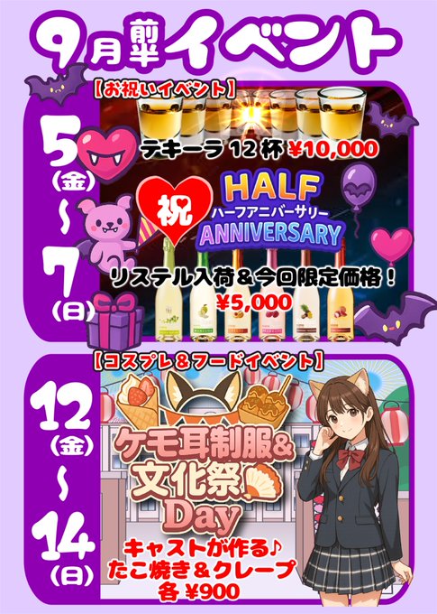綾瀬ななみ⚜️さんがリポストDear My…♱でぃあまい♱【福岡天神】ヴァンパイアメイドBAR@dearmy2025·2025/09/14(日) ケモ耳制服&文化祭Day🐱 15-21.5 もこ @dearmy_moko あま @dearmy_ama 15-22 なの。 @dearmy_nano 17-22 千夜子 @dearmy_chiyoko 19-26 くもり @dearmy_kmr 22-29 さとう @dearmy_sato 23-29 ななみ @dearmy_773 みなみ @dearmy_minami るい @dearmy_rui42798