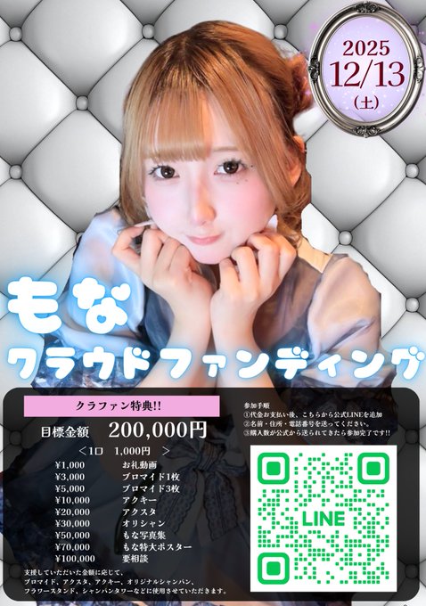 天神 BlackFamilyあのね@mby4x·15時間12月13日はぷりぷりぷりてぃーなもなさんのイベントだよう❤︎ 特典もたっぷりなので是非にー🫵🏻引用BLACKFAMILY😈悪魔アイドルコンセプト 福岡春吉コンカフェ@BlackFamily_off·17時間【素敵なお知らせ...😈💜】 12/13(土)に"素敵なイベント"行います✨ ①もなオリジナルシャンパン2本"事前予約限定オリジナルTシャツ"プレゼント!! こちら数量限定です!!お早めに✨さらに表示132