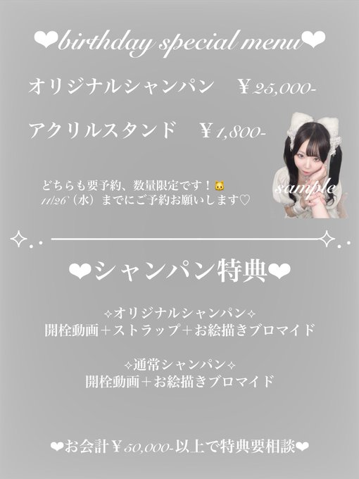 天神 DearMy… 𐕣でぃあまい𐕣ぬうさんがリポスト綾瀬ななみ⚜️12/6生誕@dearmy_773·✧生誕イベントのお知らせ✧ 今年も生誕イベントを開催することになりました! オリジナルシャンパン・オリジナルグッズもございます!(要予約❕❕) この日だけはななみのために、予定を空けてもらえたら嬉しいです( ;꒳; )♥️112313