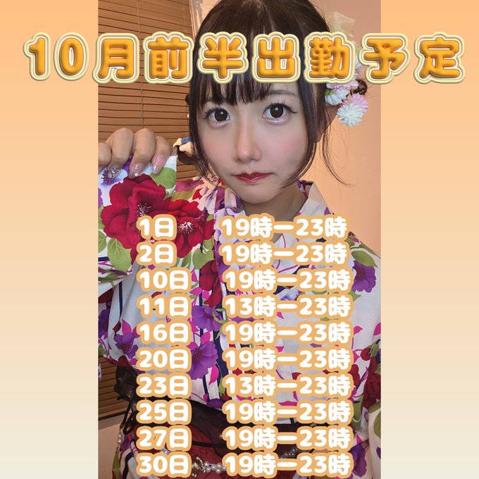 綾瀬ななみ⚜️@dearmy_773·10月前半予定表 10月後半全然いないので前半戦で待ってます! DMくださーーーーい!🎶171