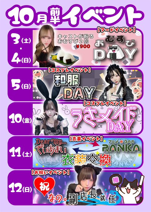 めるさんがリポストBLACKFAMILY😈悪魔アイドルコンセプト 福岡春吉コンカフェ@BlackFamily_off·📣10月イベントのお知らせ📣 毎月6が付く日は"悪魔の日😈" 【10/6,16,26】 終日5,000円✨ その他特典盛りだくさん!! ナイトメアお誕生日会&魔王就任イベント 【10/10】 なんと"ナイトメア"魔王を襲名します😈 最高のお誕生日になるようお祝いしにぜひお越しください✨さらに表示52431