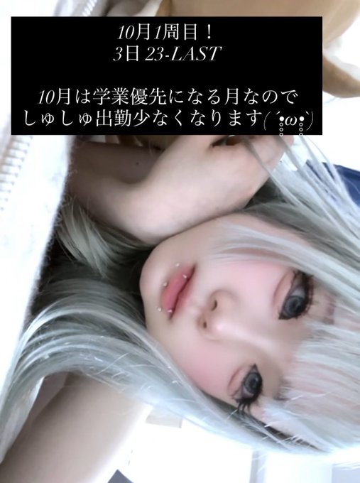 嶺亜☠@ビジュラム福岡天神店@bjlmfuk_reia·6時間ちな10/3.4.16以外ほぼまったりなので会いに来てくれたらうれしいよーー🥲引用嶺亜☠@ビジュラム福岡天神店@bjlmfuk_reia·9月28日10月前半 3日(金)19-5 4日(土)19-5 👼🏻🪽 5日(日)17-23 👼🏻🪽 6日(月)17-23😈🪽 9日(木)17-23 10日(金)19-5 11日(土)19-5 12日(日)19-5 15日(水)17-23 16日(木)17-23 17日(金)19-5 👼🏻🪽・・・天使の日 😈🪽・・・天使の日(堕天使) 10月からいっぱい会えるよ🎶4266