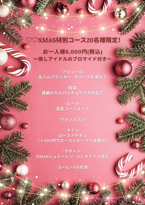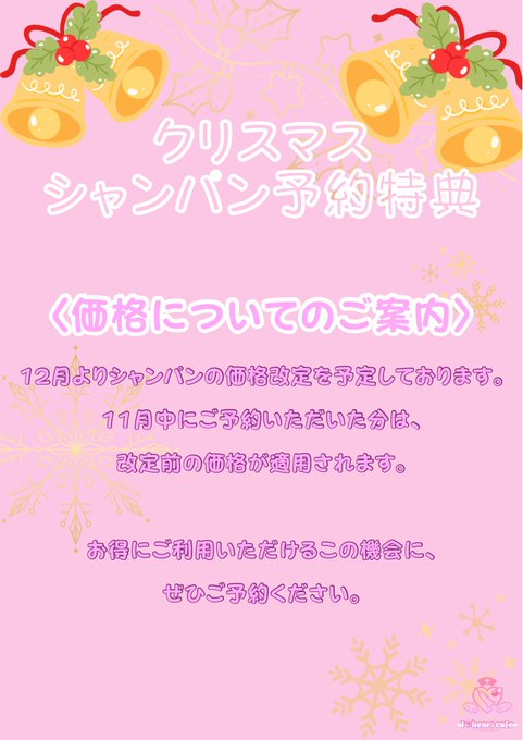 天神 I♡Heart cafeころね👼🏻I♡Heart cafe@Iheart_korone·12時間まってWWWあと30分ですт т クリスマス、素敵な思い出つくりたいです🫶🏻💭 でもクリスマスいっしょにすごせるの特別なのでたのしみ👶🏻 まよてるよーーて方、駆け込みもお待ちしておりますのでぜひに🌟引用I♡Heart cafe🏥福岡天神ナースコンカフェ@I_Heartcafe·11月18日🎅クリスマスイベントのお知らせ🎅 下記日程の間でシャンパン類をご予約いただいた患者様へ値段によって異なる特典をプレゼントいたします🎁 ご希望の患者様は当DMへ【クリスマス】とお送りくださいませ。 また、12月よりシャンパン類の価格改定を予定しております。さらに表示3192