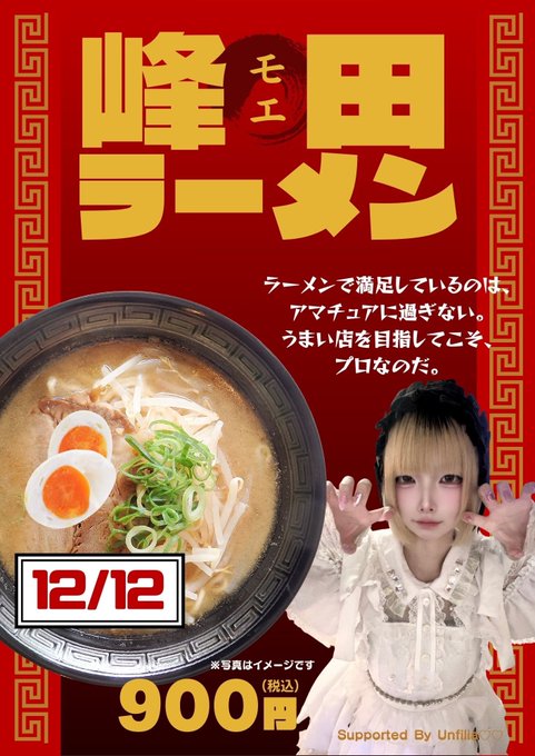 天神 親不孝♡♡(あんふぃりあるルキルキ)みりさんがリポスト親不孝♡♡@unfilial_cafe·\\ついに開店❗️ 峰田ラーメン🍜 // アイドル峰田モエによる、 ファンおもてなし企画♡♡ 記念すべき第1回目は明日12/12(金)🙌 ╭━━━━━━━━━━━━━━━╮ 豚骨醤油ラーメン 900円(税込) ╰━━━━━━v━━━━━━━━╯ 🦈 博多と言えばとんこつラーメン❗️さらに表示峰田 モエ8131,936