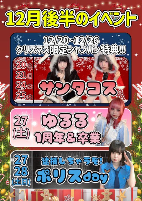 天神 DearMy… 𐕣でぃあまい𐕣Dear My…♱でぃあまい♱【福岡天神】ヴァンパイアメイドBAR@dearmy2025·2時間【 追加 】 24-29 ゆり @dearmy_yl引用Dear My…♱でぃあまい♱【福岡天神】ヴァンパイアメイドBAR@dearmy2025·2時間2025/12/13(土) 軍服ロリータDay🐦⬛ 15-19 あま @dearmy_ama 15-21 にこ @dearmy_nico なの。 @dearmy_nano 17-21 千夜子 @dearmy_chiyoko 21-26 ななみ @dearmy_773 21-25 るい @dearmy_rui 21.5-24 さとう @dearmy_sato 23-29 しぐれ @dearmy_shigure 24-29 まか @dearmy_maka158