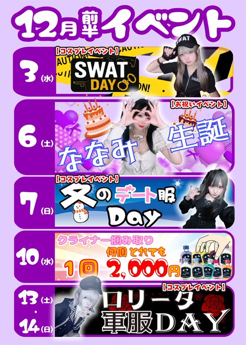 天神 DearMy… 𐕣でぃあまい𐕣Dear My…♱でぃあまい♱【福岡天神】ヴァンパイアメイドBARさんがリポスト煽られ副店❕なのにゃんこ。@dearmy_nano·5時間引用Dear My…♱でぃあまい♱【福岡天神】ヴァンパイアメイドBAR@dearmy2025·10時間2025/12/13(土) 軍服ロリータDay🐦⬛ 15-19 あま @dearmy_ama 15-21 にこ @dearmy_nico なの。 @dearmy_nano 17-21 千夜子 @dearmy_chiyoko 21-26 ななみ @dearmy_773 21-25 るい @dearmy_rui 21.5-24 さとう @dearmy_sato 23-29 しぐれ @dearmy_shigure 24-29 まか @dearmy_maka125610