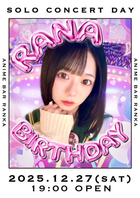 博多・中洲・西中洲 アニメBARランカ固定アニメBAR☆RANKA💚12/27らなBDイベ@AB_RANKA·💚おしらせ💚 12月27日(土)にらな副店長(@lana_RANKA)のバースデーイベントが開催決定!!🎂🐭 今回は【らな生誕ソロコンDAY】です₊ ⊹🎀 *ੈ みんなでらな副店長のお誕生日をお祝いしましょう🎉 沢山のご来店をお待ちしてます🐭!316707