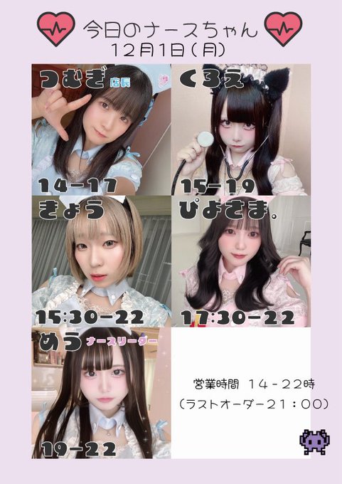 天神 I♡Heart cafeI♡Heart cafe🏥福岡天神ナースコンカフェ@I_Heartcafe·💉12月1日(月)の出勤情報💉 🍓いちごオリシャン予約受付中(12.12まで) 🦴いぬいオリシャン予約受付中(12.7まで) 🎄クリスマスシャンパン予約受付中(12.10まで) ❄️冬メニュー発売開始 営業時間 14:00〜22:00(L.O.21:00) ご来院お待ちしてます♡ #福岡コンカフェ #天神コンカフェつむぎ🌾I♡Heart cafeさんと他4人3286