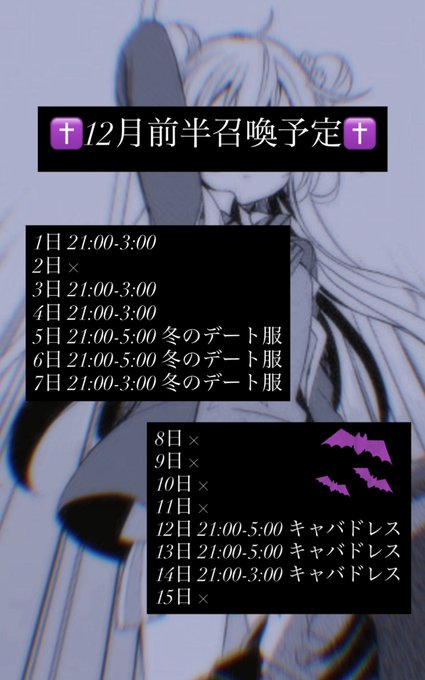 天神 ビジュラム福岡天神店碧⛄️@ビジュラム福岡天神店@bjlmfuk_ao·❄️12月前半❄️ 1.17-23 2.17-23 4.17-23 9.17-23 11.17-23 12.19-23 13.19-5 15.17-23 13日久々に朝までだから楽しみ⛄️ 寒いからみんな風邪ひかないように💫6126
