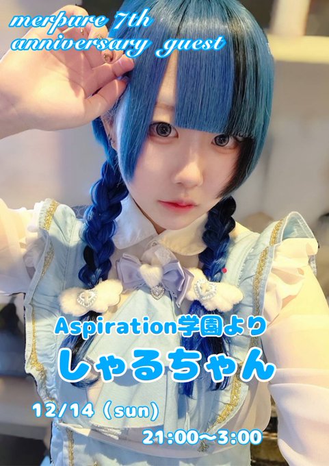 広島 メイド喫茶めーるぴゅあメイド喫茶 めーる໒꒱ぴゅあ@merpure_cafe·☕️お知らせ☕️ 🎉める7周年🎉 🩷ゲスト様🩷 - - - aspiration学園より 💙しゃるちゃん💙 12/14(日) 21-3 (@aspiration_shal ) 元aspiration学園より 12/13(土)19-3 .12/14(日)19-2 💕ろろちま💕 (@aspiration_roro ) - - - たくさんご主人様お嬢様のご帰宅お待ちしております❣️🧸45412