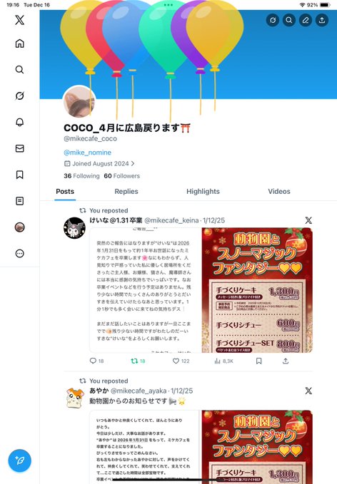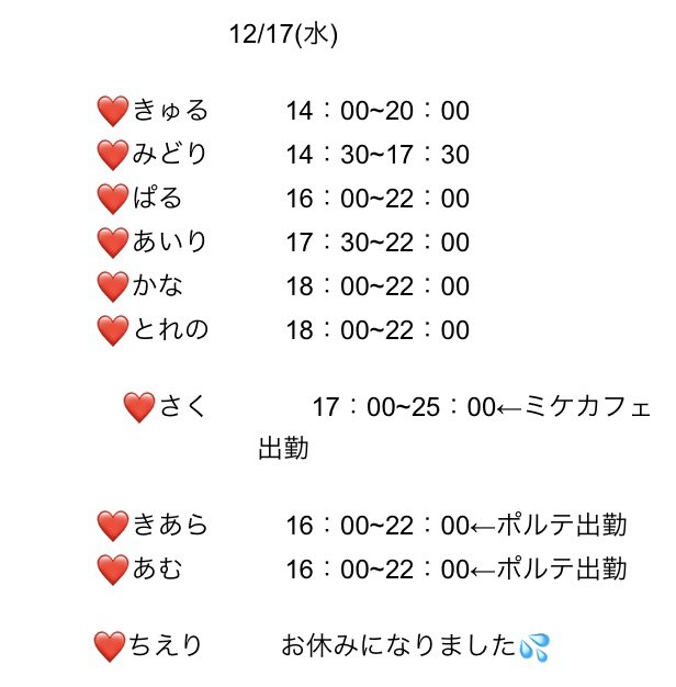 広島 えんじぇるぴゅあメイド喫茶 えんじぇる໒꒱ぴゅあさんがリポストねも@えんぴゅあ❤︎アス学@angelpure_nemo·5時間おきゅいん❕#えんぴゅあ #自撮り界隈 #いいね返しメイド喫茶 えんじぇる໒꒱ぴゅあ引用メイド喫茶 えんじぇる໒꒱ぴゅあ@angelpure_cafe·13時間12月17日︎ すいようび 🎀お給仕情報🎀 19-23ごま 19-2杏子 20-1.5ねも、にこりん 21-1.5らむ ໒꒱o+:;;;:+o꒱o+:;;;:+o໒꒱o ご主人様&お嬢様のご帰宅お待ちしております💗447831