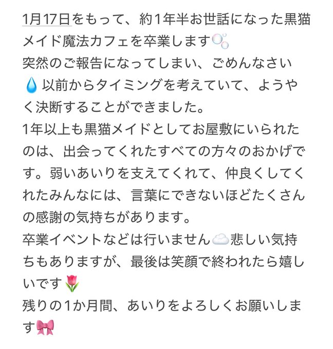 広島 黒猫メイド魔法カフェ ドン・キホーテ広島八丁堀店【公式】黒猫メイド魔法カフェ≪ドン・キホーテ広島八丁堀店≫さんがリポストあいり@kuroneco_airi·あいりからの大切なご報告- ̗̀📢1412611,302