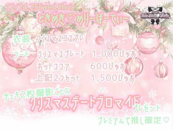 広島 えんじぇるぴゅあメイド喫茶 えんじぇる໒꒱ぴゅあさんがリポストあんじゅ@えんぴゅあ@angelpure_anj·2時間おきゅいん❕ ツインテールをしてみるなど⌒(。。🎀)⌒ #えんぴゅあメイド喫茶 えんじぇる໒꒱ぴゅあ引用メイド喫茶 えんじぇる໒꒱ぴゅあ@angelpure_cafe·13時間12月21日︎ にちようび 🎀お給仕情報🎀 19-0.5にこりん 19-2杏子 21-1.5らむ 22-2ぴぴ 23-2あんじゅ ໒꒱o+:;;;:+o꒱o+:;;;:+o໒꒱o ご主人様&お嬢様のご帰宅お待ちしております💗112271