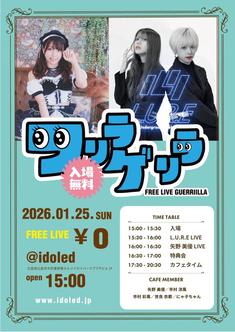 広島 idoled矢野美優 ( みょん )@mpz_miyuu·5分何かあるごとに律儀に連絡くれるゆうちゃん🩵🪽 寂しい〜〜 3/7(土) ライブ・カフェ 3/8(日) カフェ にみょんも参加します! 出て欲しいって言ってくれてありがと♡ 💡ちなみに3/1(日)ソロライブ予定 〜平日カフェ参加の3/8までいます!💡引用idoled@idoled082·25分【お知らせ】idoledオープン当初より支えてくれたメンバーの「眠羽ゆう(@idoled_yuu)」が県外での就職が決定しているため、3月7日・8日の公演を持って、idoledを卒業致します😭 眠羽ゆう卒業公演「MIZUIRO DAYS」 【開催日】3月7日(土) 【時間】open 15:00 / start 15:30さらに表示2112