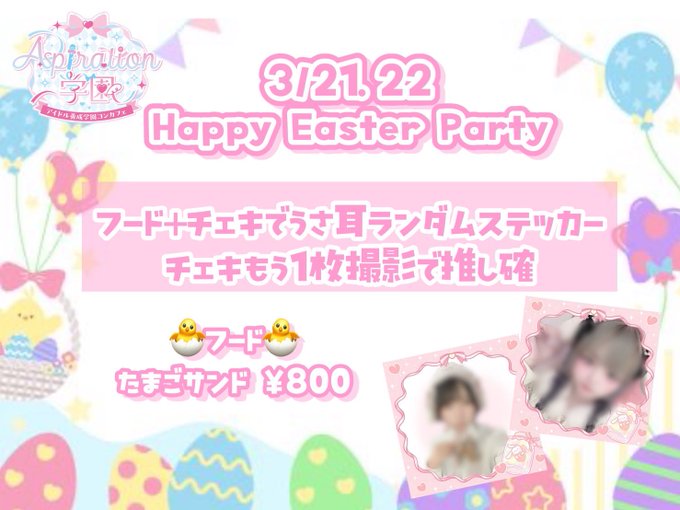 広島 Aspiration学園Aspiration学園🎀広島駅前店@aspirationgirls·- - - - - - - - - ꒰ ♡ ꒱ - - - - - - - - - 🐣3/21.22 Happy Easter Party🐣 フード➕チェキでうさ耳 ランダムステッカープレゼントᕱ⑅︎ᕱ チェキもう1枚撮影で推し確定🌟 - - - - - - - - - ꒰ ♡ ꒱ - - - - - - - - -3203