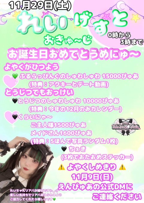 広島 Aspiration学園 広島 Aspiration学園Aspiration学園🎀広島駅前店@aspirationgirls·🎀イベントお知らせ🎀 💜11/29(土)ぱるふぁむ、ねも昇格︎💚 オリシャンを予約販売します‼️ 本日から11/9(日)までに本数とお名前を明記の上、アス学公式XのDMまでお願いします❕ 沢山のご訪問お待ちしております❕ぱるふぁむ@アス学さんと他1人21115 10月28日 23:29