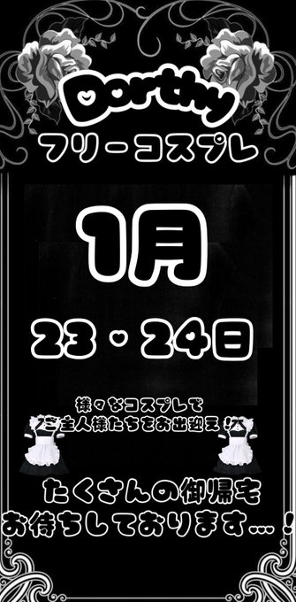 固定♱ Dorthy ドロシー ♱@dorthy_1115·⚖️1月後半の出勤予定⚖️ 23.24日✨フリコスイベント✨ #コンカフェ #広島コンカフェ #ドロシー #Dorthy #広島メイド4232