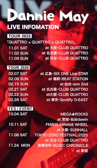 ハイル@Hill_ROCKCUNE·好きバンドのダニーメイが来年広島来るから全人類来てまじで聴いて曲497