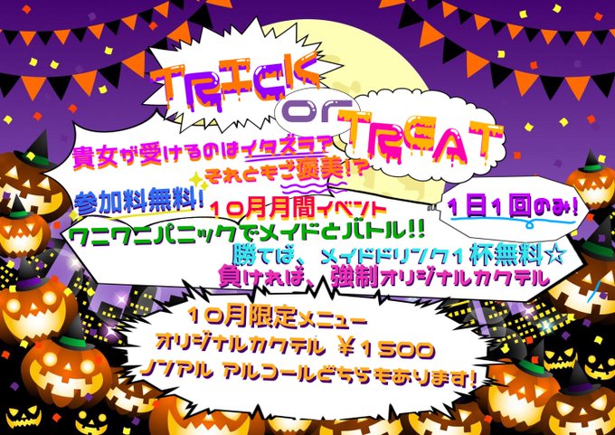 夜ネ申さんがリポストMoi 広島コンカフェ@Moi_nakanohito·TRICK or TREAT‼️ メイドに勝たなきゃイタズラしちゃうぞ〜👻 10月月間イベントになります🍭 10月限定メニューでなんとオリジナルカクテルも出しちゃいます❣️ お得なイベントなのでぜひお待ちしております🎶 ⬇️詳しくは画像をチェック‼️44497