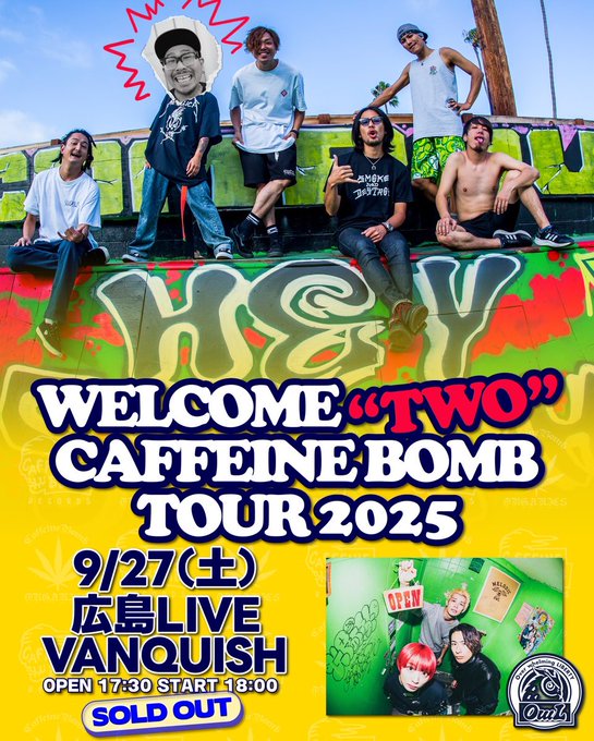 ハイルさんがリポスト正方形のプロフィール画像HEY-SMITH@HEY_SMITH_Japan·【WELCOME “TWO” CAFFEINE BOMB TOUR】 本日9/27(土)広島LIVE VANQUISH OPEN: 17:30 / START: 18:00 Thank you SOLD OUT!!! HEYちゃんグッズの先行販売は、 15:00〜開始します! チケットをお持ちでない方も購入可能です!221713.2万