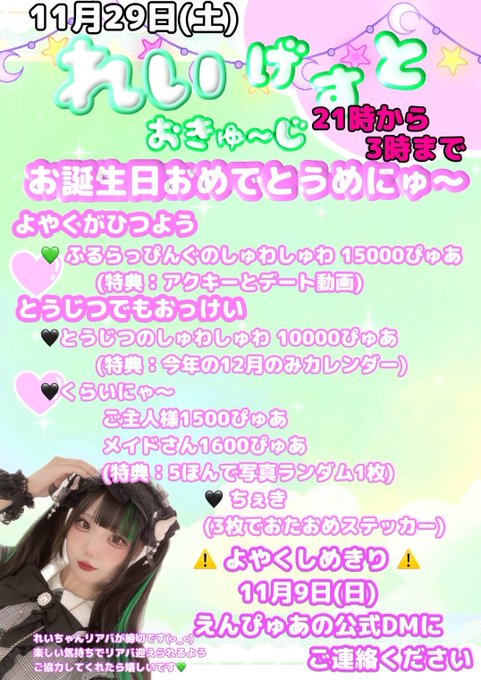 広島 えんじぇるぴゅあメイド喫茶 えんじぇる໒꒱ぴゅあさんがリポストねも@えんぴゅあ❤︎アス学@angelpure_nemo·1時間れいさんおいわい💚❕#えんぴゅあメイド喫茶 えんじぇる໒꒱ぴゅあ引用メイド喫茶 えんじぇる໒꒱ぴゅあ@angelpure_cafe·13時間11月29日︎ どようび 🎀お給仕情報🎀 19-23ごま 19-0.5杏子 19-1いちご 19-1.5らむ 19.5-1.5べる 21-3💚れい 23-3あんじゅ、ぴぴ 0-3ねも ໒꒱o+:;;;:+o꒱o+:;;;:+o໒꒱o ご主人様&お嬢様のご帰宅お待ちしております💗110196