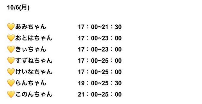 comfy ~3rd place ~@comfy_hiroshima·10月5日(日)出勤表🍸 🩷20:00-2:00 ❄︎ まや(@may_l29 ) 🩷20:00-last ❄︎ かなの(@kanannnno6 ) 🩷20:00-last ❄︎りりや(@ririya_comfy ) ↓週間出勤情報↓ http://x.gd/chfOX ↓料金システム↓ http://x.gd/CO9Xt #ガールズバー #飲み会  #PR #広島 #ダーツ #バー #流川62