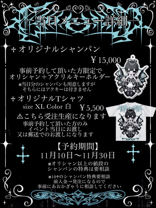 広島 Moi天羽あお@12/12.13 生誕&卒業❕@ux__xu_ao·1時間体調不良ダウンのため今日明日お休み頂いてます😭 今日明日でメニュー予約ラストですのでよろしくお願いします🙏😭引用天羽あお@12/12.13 生誕&卒業❕@ux__xu_ao·11月10日返信先: @ux__xu_aoさん♱ 当日限定メニュー詳細 ♱ -オリシャン- "事前予約限定"で激かわアクキーが付くので予約必須です🩵 -オリジナルTシャツ- 初のTシャツ❕ 超絶可愛く仕上げてるので沢山の方に着てもらいたいです😽🫶 受注生産なので要予約です❕ 予約してくれる方はあおのDMに連絡お願いします💌 ⬇️詳しくは画像👀2168