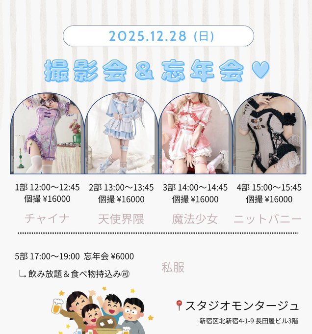 広島 idoled矢野美優 ( みょん )@mpz_miyuu·今年ラスト会える日𐔌(୨ৎ • ༝•)𐦯🩵 ﹉﹉﹉﹉﹉﹉﹉﹉﹉﹉﹉﹉﹉﹉﹉ 12/28(日) 📍スタジオモンタージュ 個撮・忘年会♡ 良いお年をしよ♡ ↳ 11/28(金)19:00〜チケ発 https://passmarket.yahoo.co.jp/event/show/detail/025aigrgart41.html…スタジオモンタージュ211541,918
